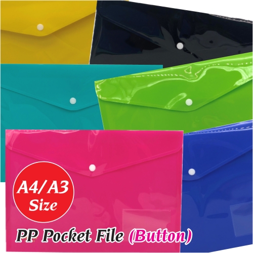 PP Pocket File with Button | A4 and A3 | Button Pocket File / Poket Fail Butang | DRAWING HOLDER | Document Holder