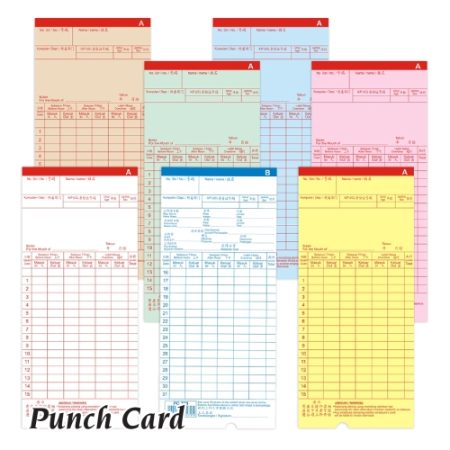 Punch Card with Hole 100pcs | Time Recorder Card | KAD PERAKAM WAKTU Time Card | 打卡纸
