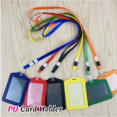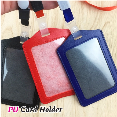 ID PVC Card Holder | PU Leather Credit Bank Card Holder Badge Case Students Bus Card Lanyard Card Cover | 卡套